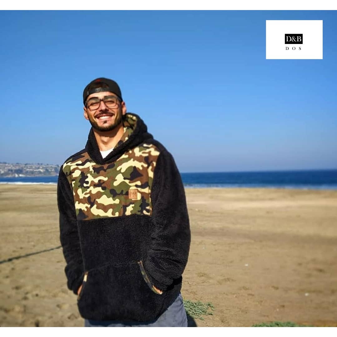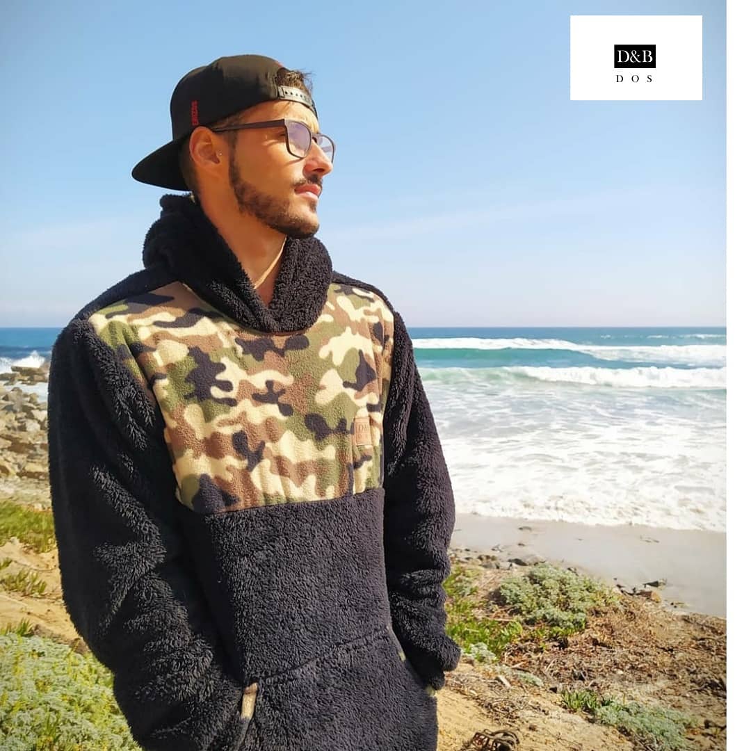 Polerón corderito con aplicación camuflado, con gorro, bolsillos canguro
